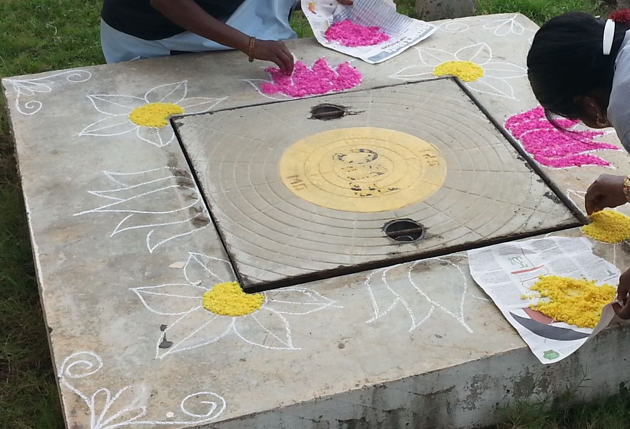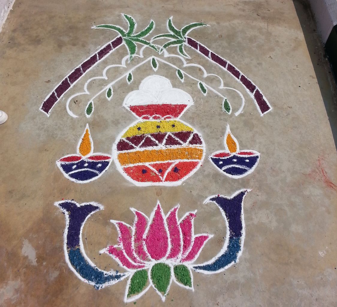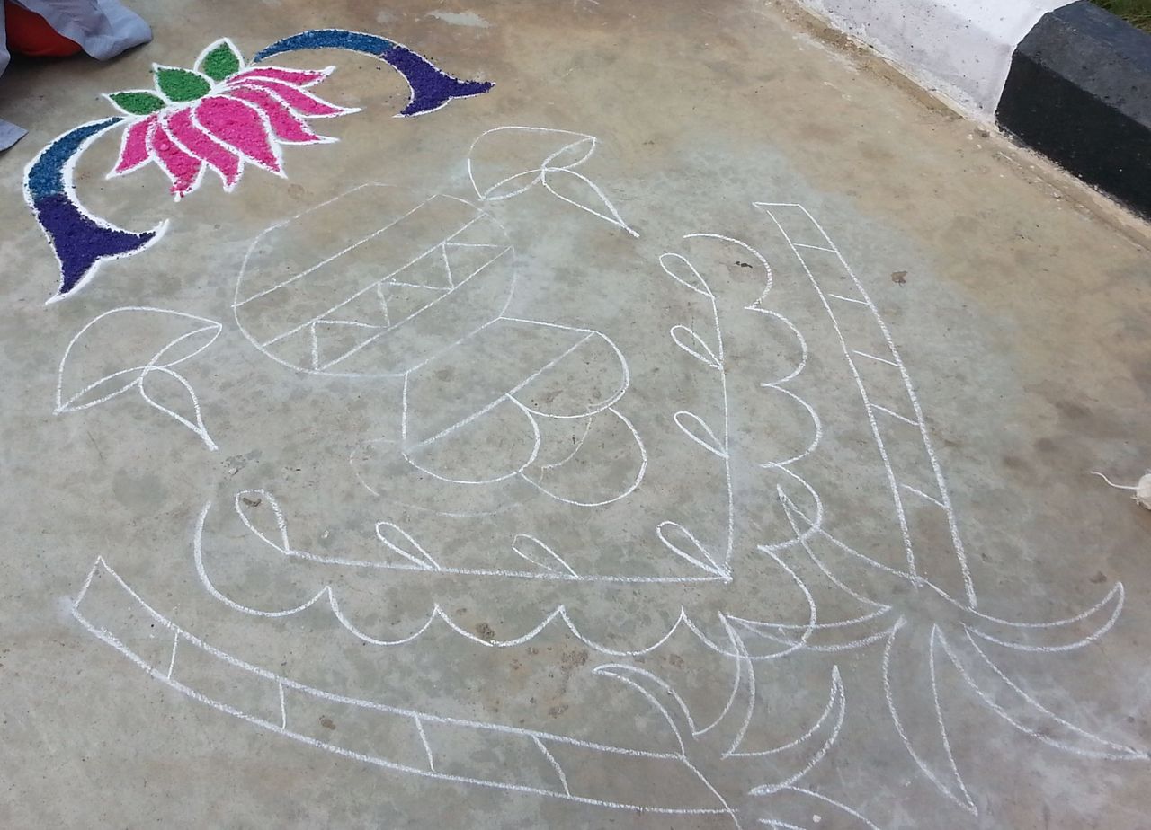 盛大な祭りのときは、豪華なコーラムが各家庭の玄関前に描かれている。