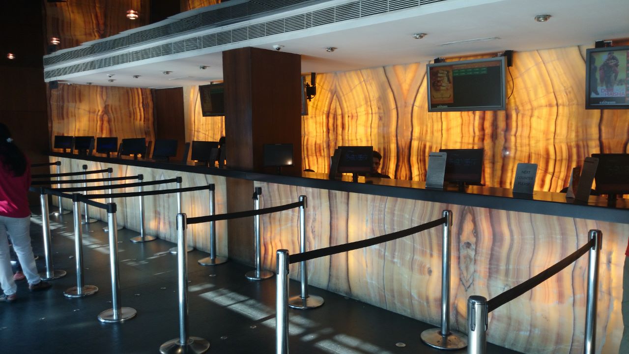 チケット売り場。ヒンディ語やタミル語が判らないので、無難にハリウッド映画を選択。ここは高級映画館に属するらしく、チケットは150ルピー(約300円)だった。安い映画館だと20ルピー(約40円)程度のところもあるが、安いところは設備や快適性に難がある。