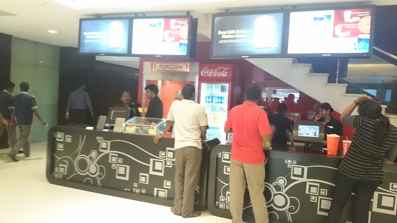 高級映画館だけあって館内の様子は洗練されており、外の世界とは随分と雰囲気が違っている。ポップコーを食べジュース飲みながら映画鑑賞というのが、ここに来るインドの民の流行りだ。