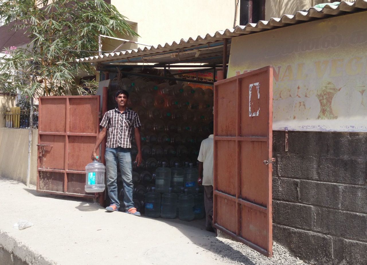 20Lのボトルウォーターを買いに行く店。(1ボトル70ルピー)