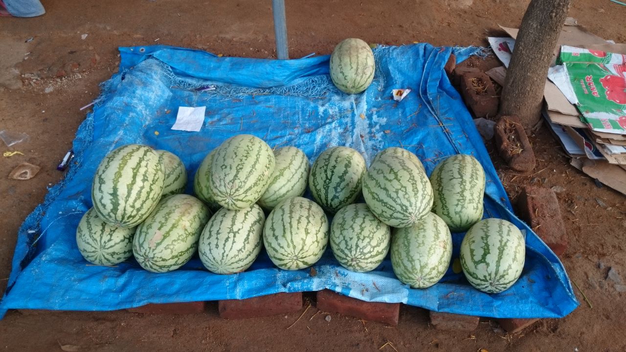 ところでインドのスイカはラグビーボールのような形をしている。(写真下)